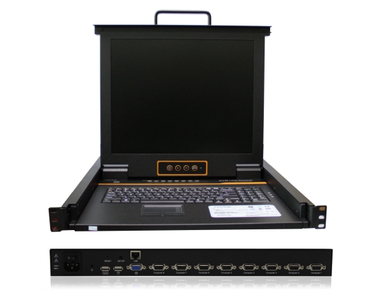 整合19"LCD显示器、键盘、鼠标于一体的折叠抽拉式一体控8台服务器