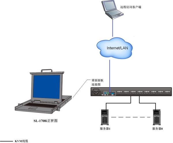 ●整合KVM控制端与17寸LCD液晶显示器于单一抽拉式机体内
