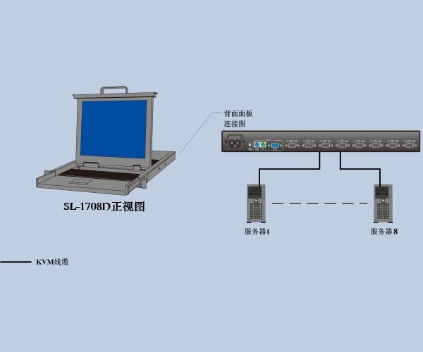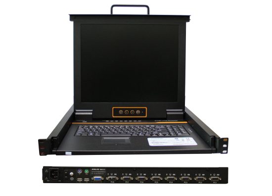 ●整合KVM控制端与17寸LCD液晶显示器于单一抽拉式机体内